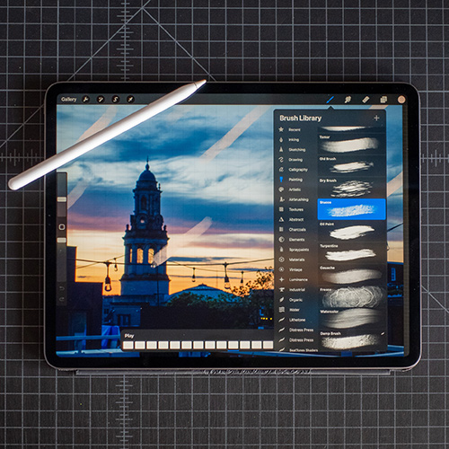 Learn powerful features of Procreate for iPad and Apple Pencil. Students should have an introductory understanding of Procreate (see Digital Drawing Fundamentals) and a desire to learn advanced techniques like photo layer adjustments, customizing brushes, and animating within the software. The demonstration covers: