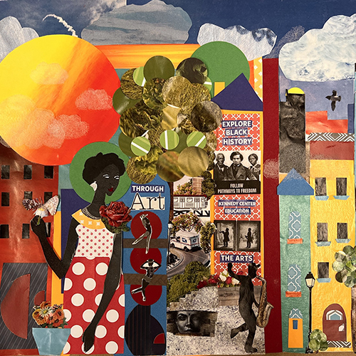 While Romare Bearden (1911-1988) worked in many mediums from oil and watercolor to printmaking, he is best known for his mixed-media collages and photomontages. His expressive compositions feature urban scenes, rural life, and the jazz scene. After looking at Bearden’s works of art and the coded messages in his collages, students try their hand at creating Bearden-inspired mixed-media compositions using a variety of fabrics, papers, stencils, photographs, paint, and drawing materials on a variety of surfaces. Elements of composition are covered alongside technical components like adhesives and supports. Development of personal style and visual storytelling are encouraged.