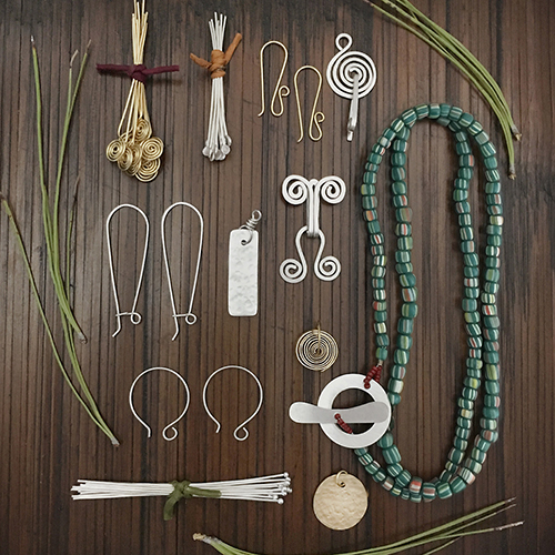 Some previous wirework experience (such as completion of the Introduction to Beading course or similar workshops) is recommended, and students should know how to make open and closed loops using basic jewelry-making hand tools. A wire kit is available for purchase from the instructor’s website.